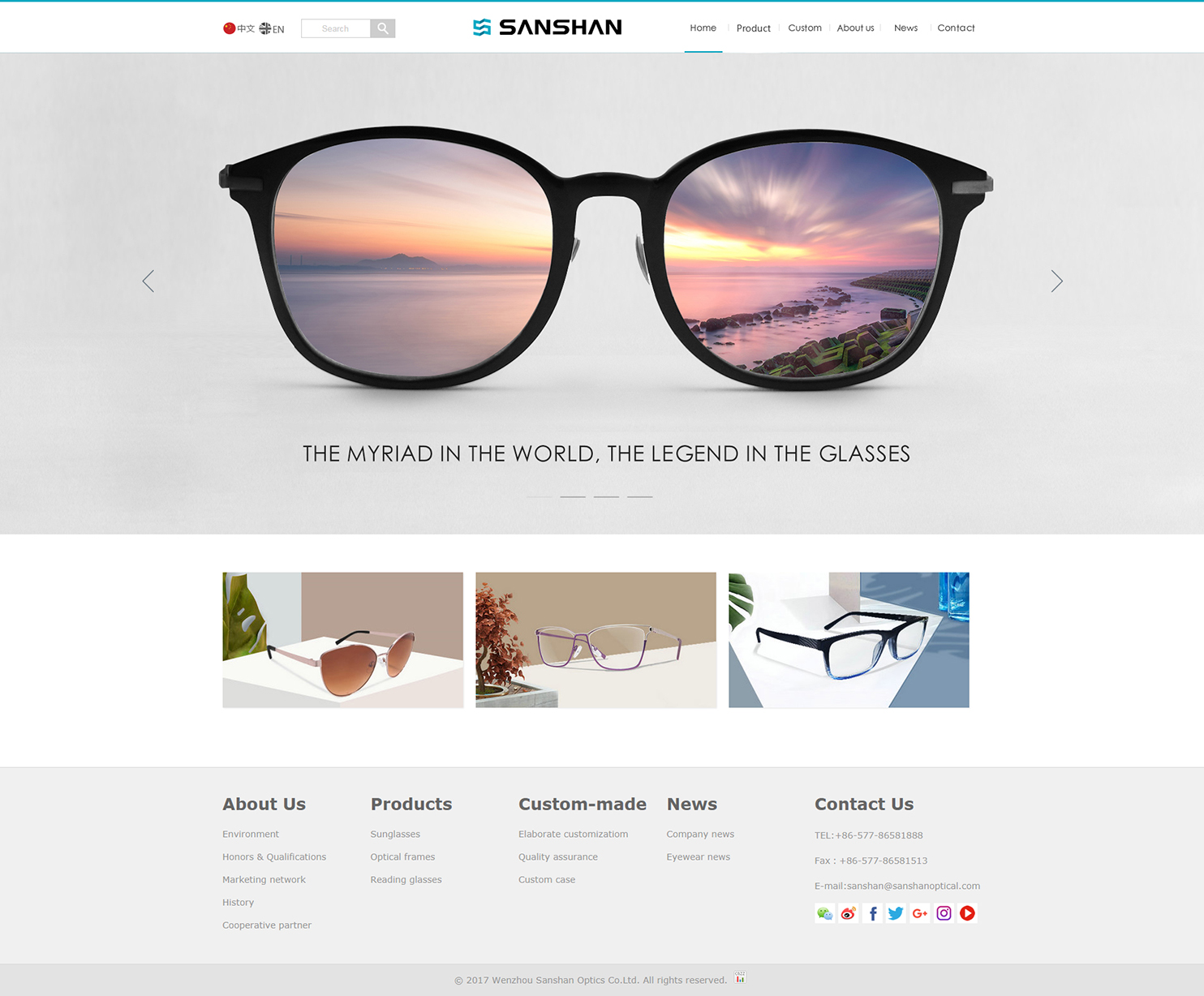 溫州三杉光學有限公司成立于1999年,是一家專業(yè)從事光學及太陽眼鏡設(shè)計、開發(fā)、制造和銷售的大型民營企業(yè)。